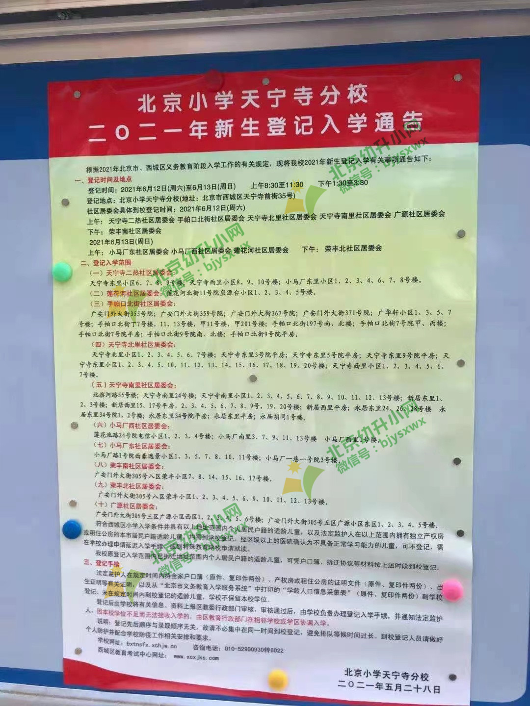 2021年西城区北京小学天宁寺分校招生简章