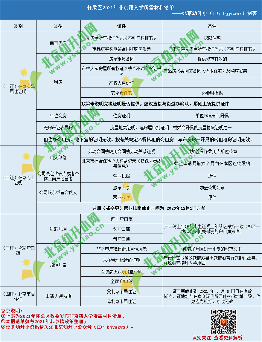 2022年怀柔区非京籍幼升小四证材料清单说明