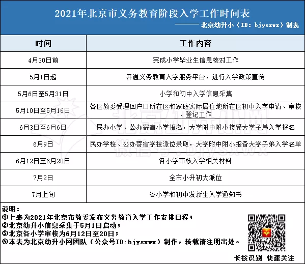 2021幼升小的家长注意,北京幼升小网团队整理了北京市入学时间表,各位家长可对照准备,预祝每位孩子顺利入学!