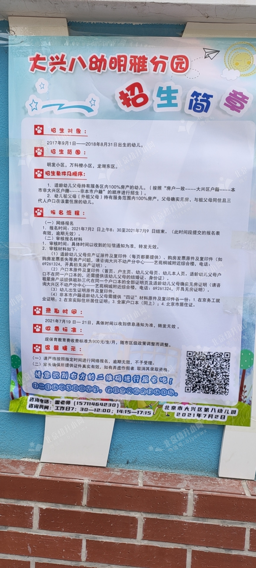 2021年大兴区八幼明雅分园招生简章