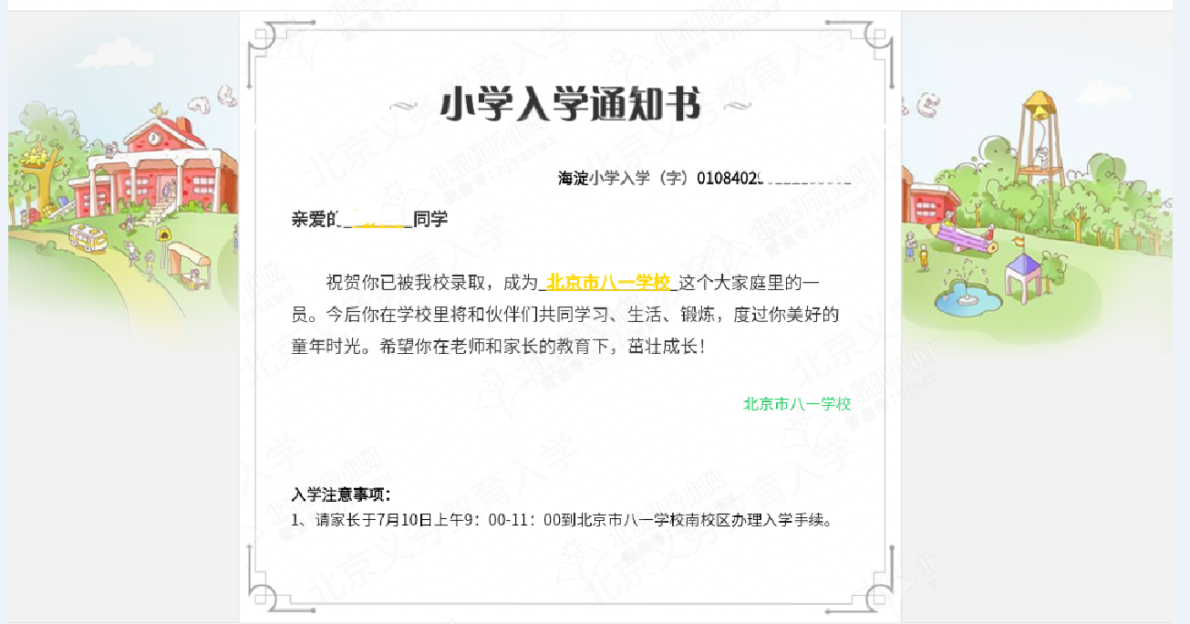 2021年海淀区八一学校录取通知书公布!海淀区2021年小学录取通知陆续下发!各位家长您知道2021年海淀区八一学校录取通知书上有哪些信息?北京幼升小网团队为您分享相关内容。
