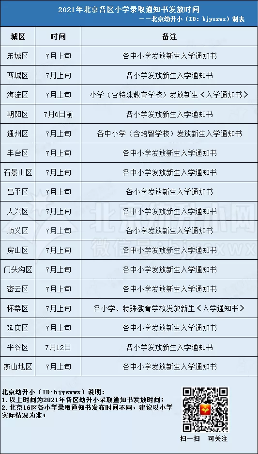 2021年北京各区小学录取通知发布时间不统一,为帮助家长更好的掌握各区小学录取通知进度,赶紧跟北京幼升小网团队一起来看看。