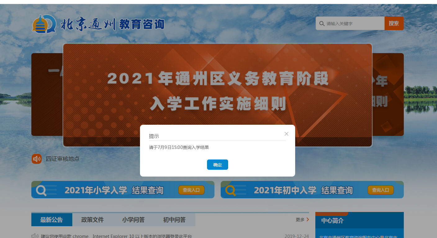 7月9日,全区非本市户籍适龄儿童父母,登录“北京通州教育咨询”平台查询派位或安排结果。