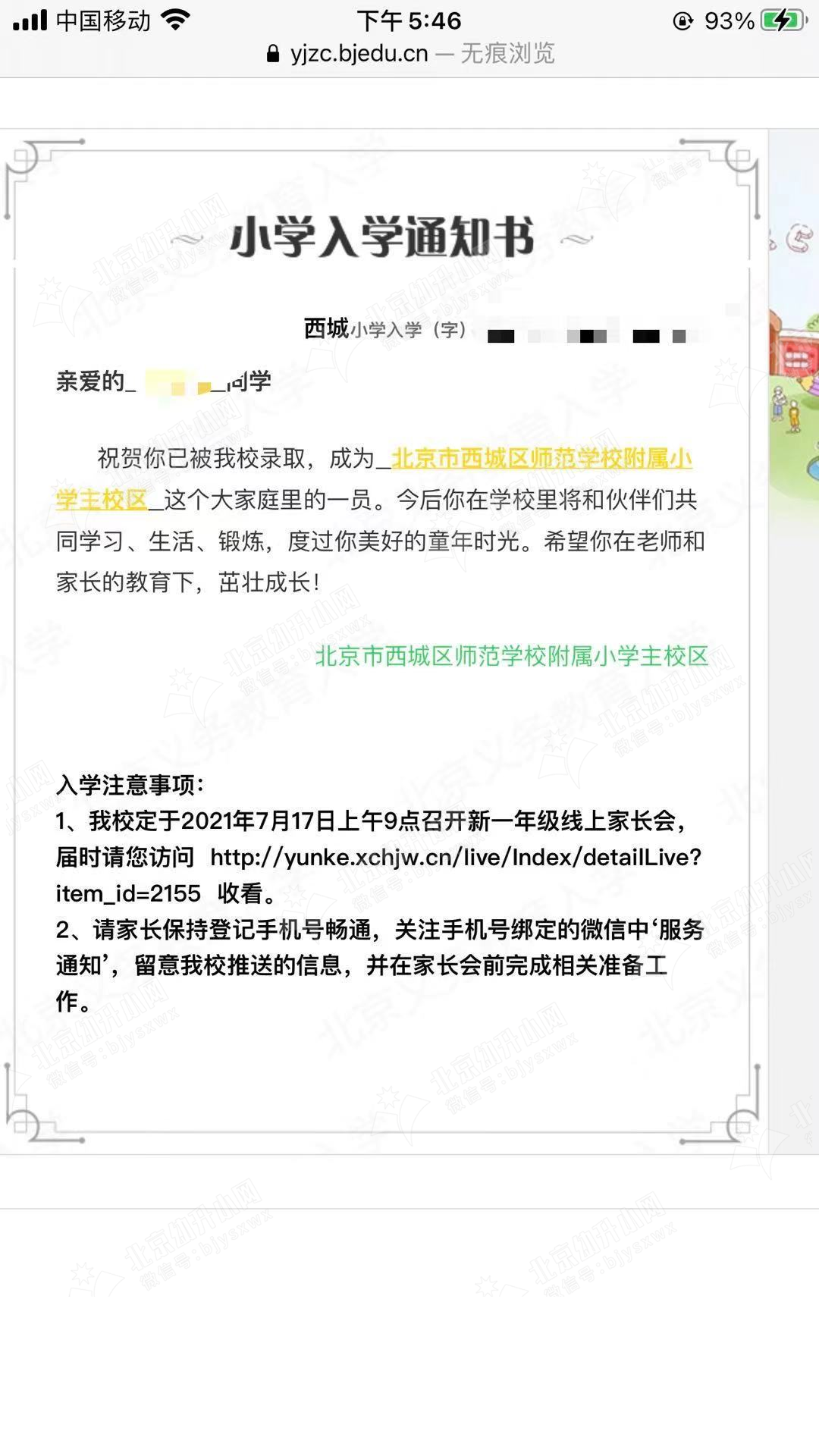 2021年西城区师范学校附属小学录取通知书公布!西城区2021年小学录取通知陆续下发!各位家长您知道2021年西城区师范学校附属小学录取通知书上有哪些信息?北京幼升小网团队为您分享相关内容。