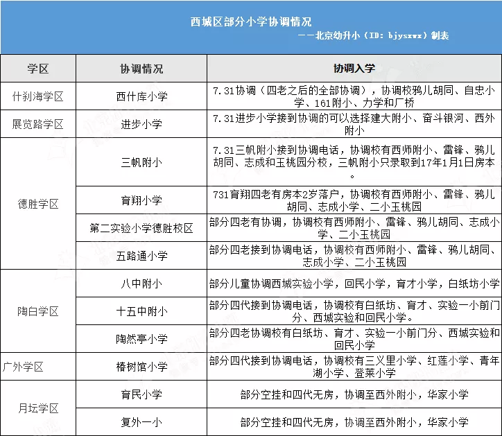 2021年西城区部分小学协调入学