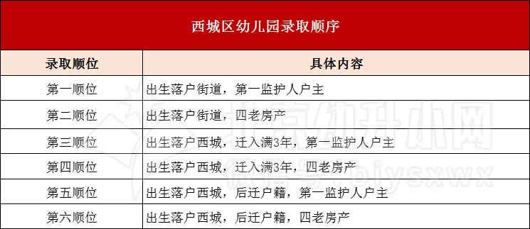 西城区入园顺位