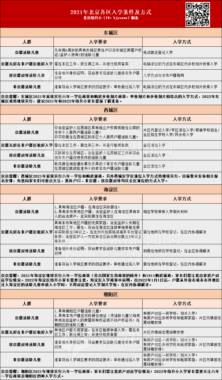 2022幼升小的家长注意,北京幼升小网团队整理了北京各区不同人群入学方式汇总,赶紧一起来看看。