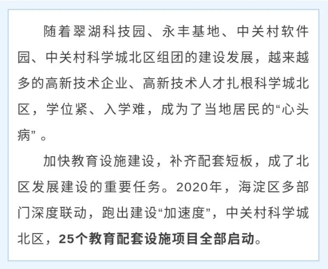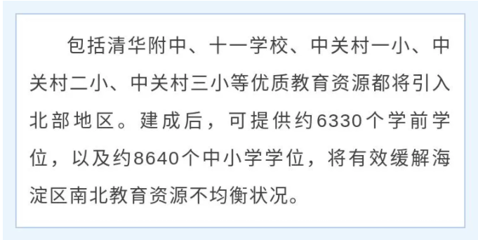 海淀北部地区将新增8640个中小学学位,6330个学前学位