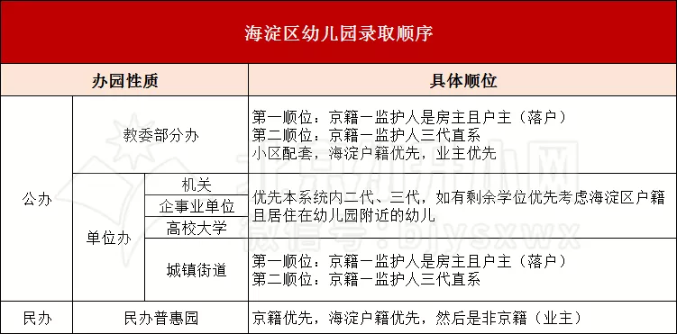 目前,海淀区各幼儿园招生顺位并非所有幼儿园都有公布,以下根据部分公布相关招生顺位的幼儿园要求整理,大家可以参考,最终请以报名幼儿园相关要求为准。