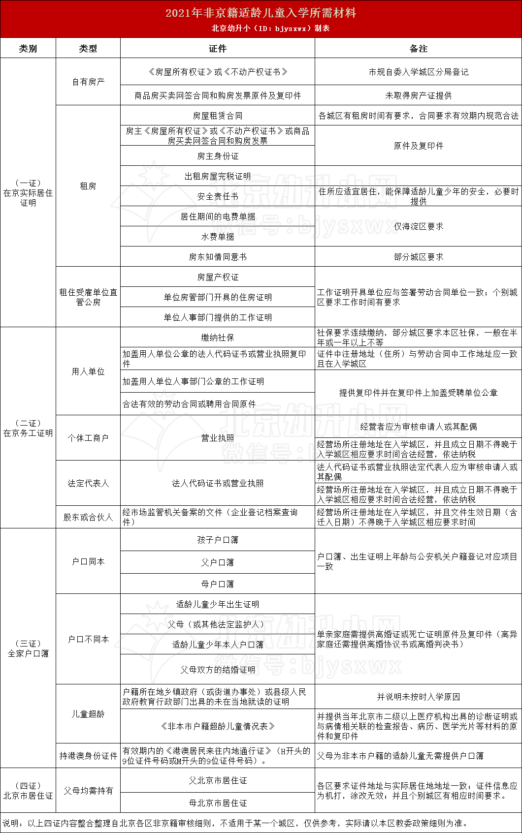 说明:以上四证内容整合整理自北京各区非京籍审核细则,不适用于某一个城区,望各位家长清楚!