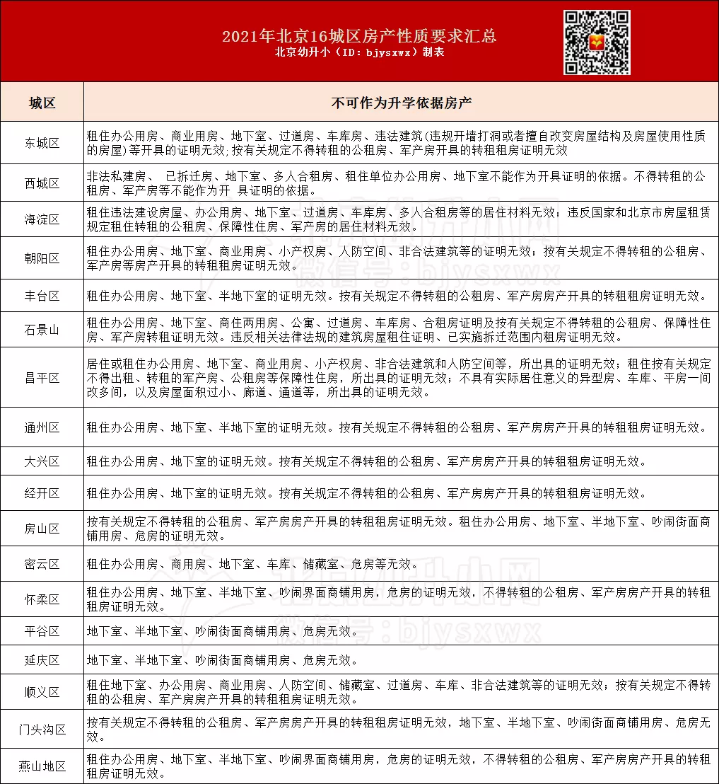 2、还需要注意的是,部分城区小产权房不能作为入学依据(如朝阳区、昌平区等);共有产权住房属于产权类住房,与其他普通商品住房入学政策一致,是可以作为入学依据,需要家长特别重视。