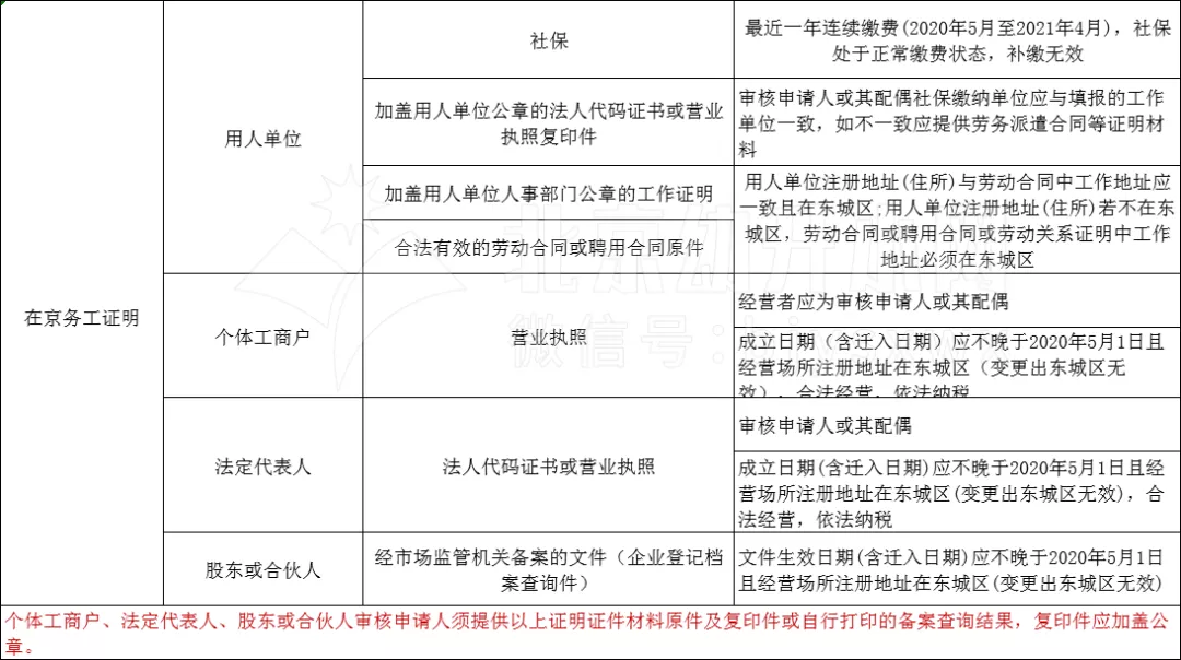 审核申请人双方均在京工作,且其中一方在东城区务工就业证明须符合下列条件之一: