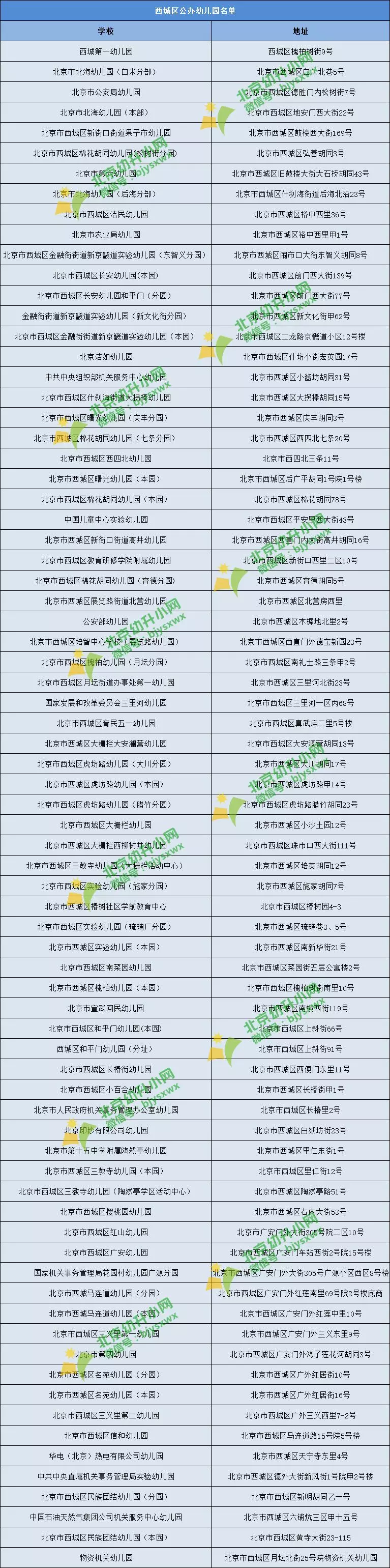 目前,西城区幼儿园共有69所,详细名单如下图所示: