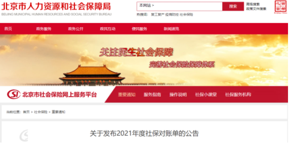 3月7日,北京市社会保险基金管理中心、北京市医疗保险事务管理中心联合发布《关于发布2021年度社保对账单的公告》。