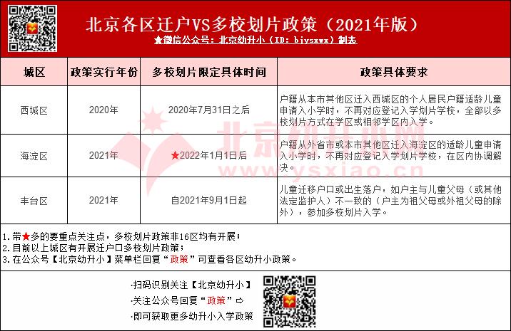 特别提醒:目前各区主要是针对从本市其他区或外省市迁入户口进行多校划片的限制,2022年及2023年家长可参考具体日期进行核查孩子入学方式是否会受影响!及早准备!