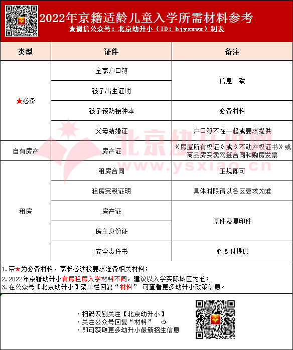 2022年幼升小家长一定要注意啦!在幼升小政策发布前,你这些材料一定要提前核查好!北京幼升小网团队整理了京籍适龄儿童入学材料清单,一起来看!