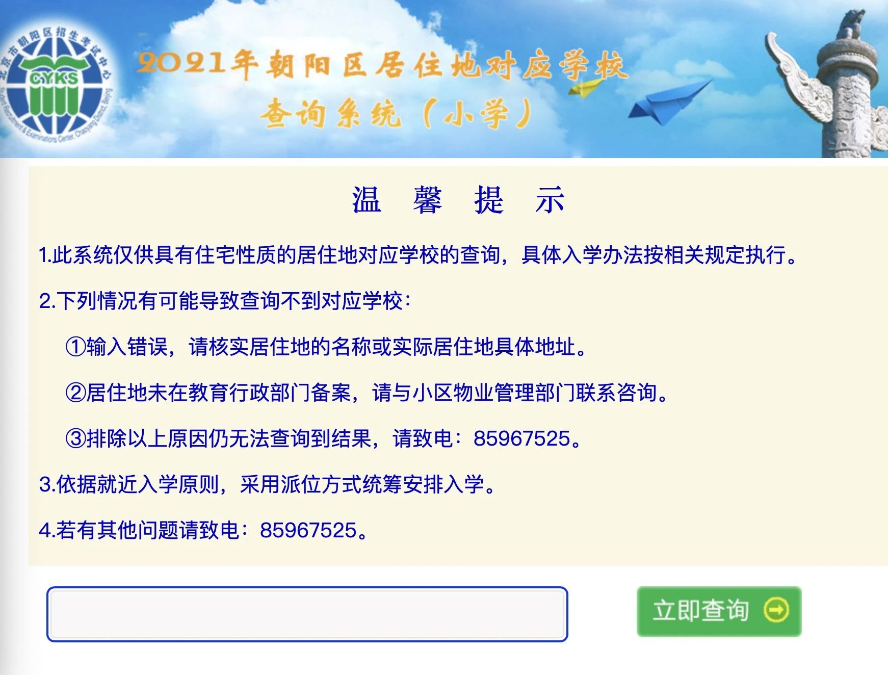 朝阳区小学划片查询系统网址(目前是2021年的划片查询系统):