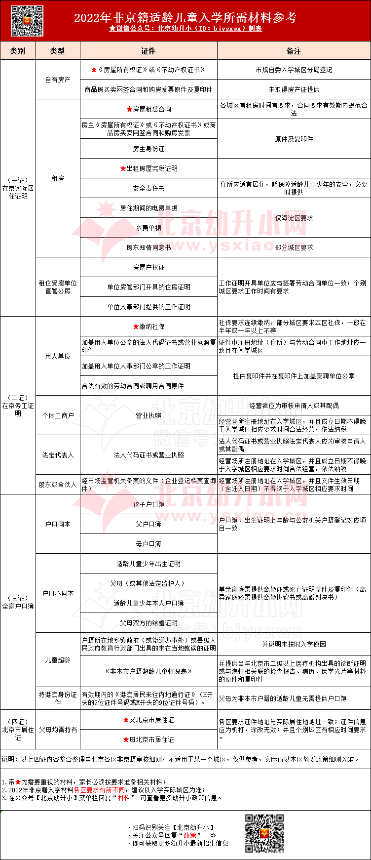 从往年入学要求来看,非京籍入学材料杂七杂八,具体您可以参考下图: