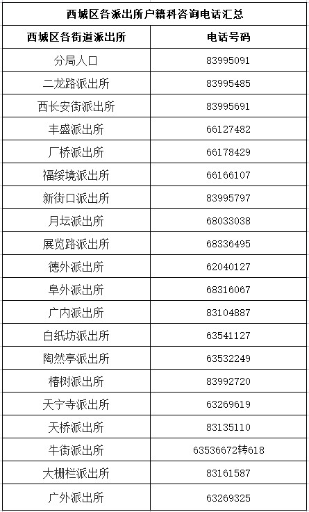 北京幼升小网团队为各位2022年西城区幼升小家长汇总了西城区各派出所户籍科咨询电话,以供家长使用。