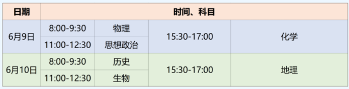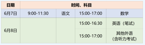 (一)统一高考时间安排