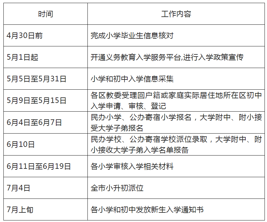 ③同时需要注意五、六月份的小学报名和七月份的小学录取通知书等入学安排。