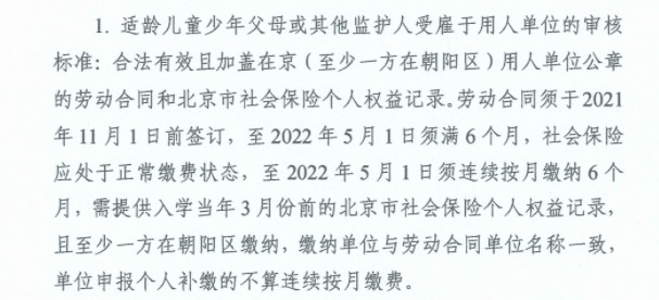 2022年朝阳区非本市户籍适龄儿童少年入学审核实施细则发布!2022年朝阳区非京籍幼升小需要缴纳多久的社保?北京幼升小网团队为您整理分享相关内容。