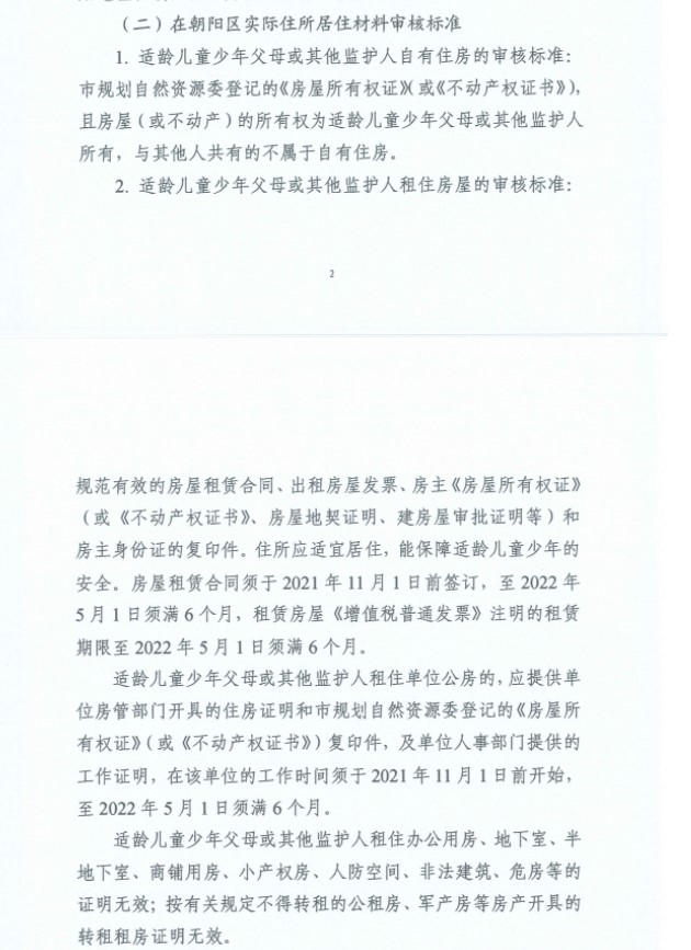 2022年朝阳区非本市户籍适龄儿童少年入学审核实施细则发布!2022年朝阳区非京籍幼升小在京实际居住证明材料有什么要求?2022年朝阳区非京籍租房完税证明需要缴纳多长时间?北京幼升小网团队为您整理分享相关内容。