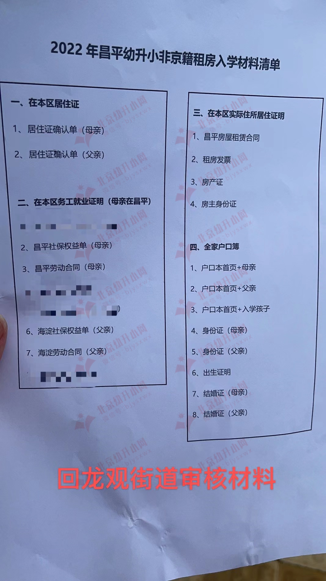 2022年幼升小昌平区各街道办非京籍材料审核要求不同,其中有热心家长分享了2022年幼升小昌平区回龙观街道办租房非京籍审核材料清单及材料排序,北京幼升小网团队为您分享相关内容。