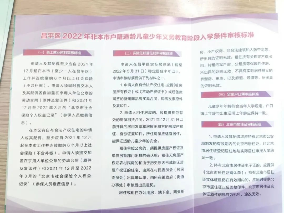 2022年房山区拱辰街道办非京籍入学材料审核细则
