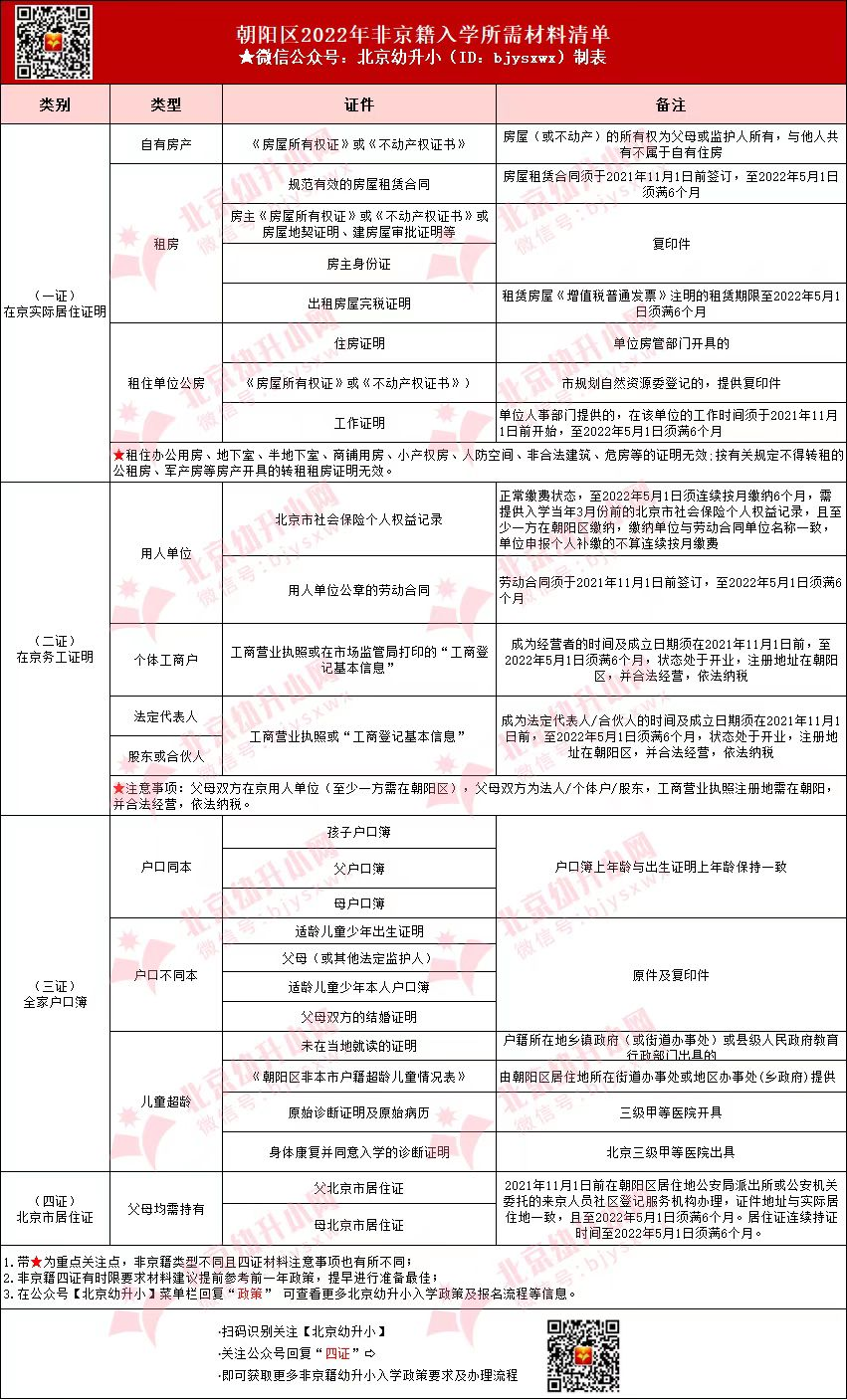 重要提醒!2022年朝阳区非京籍四证材料清单大曝光,具体如何要求,2023年幼升小四证材料参考什么?快与北京幼升小网团队一起来看看!