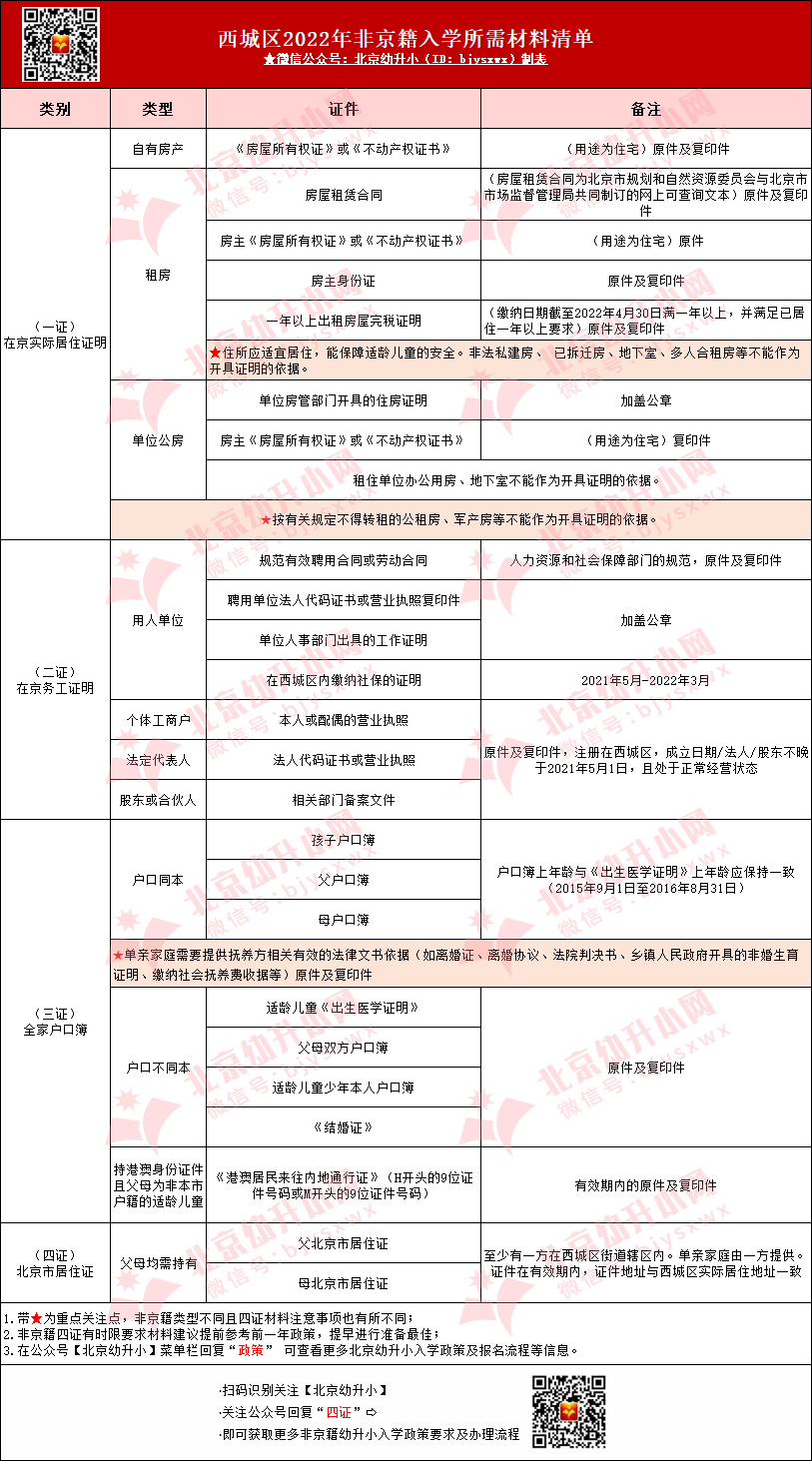 随着各区政策的发布,2022年非京籍入学材料审核细则已出,咱家材料准备的符合要求吗?北京幼升小网团队整理了西城区非京籍入学材料清单,一起来看。