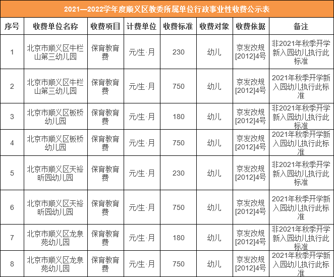顺义区人民政府网发布关于2021—2022学年度顺义区教委所属单位行政事业性收费公示,与北京幼升小网团队一起来看看!