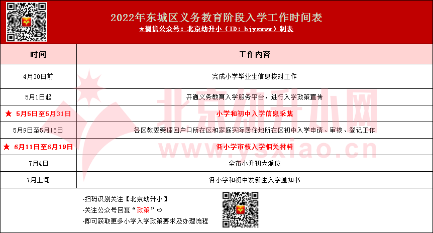 2022幼升小的家长注意,北京幼升小网团队整理了东城区各类人群入学时间安排,赶紧一起来看看详细内容。