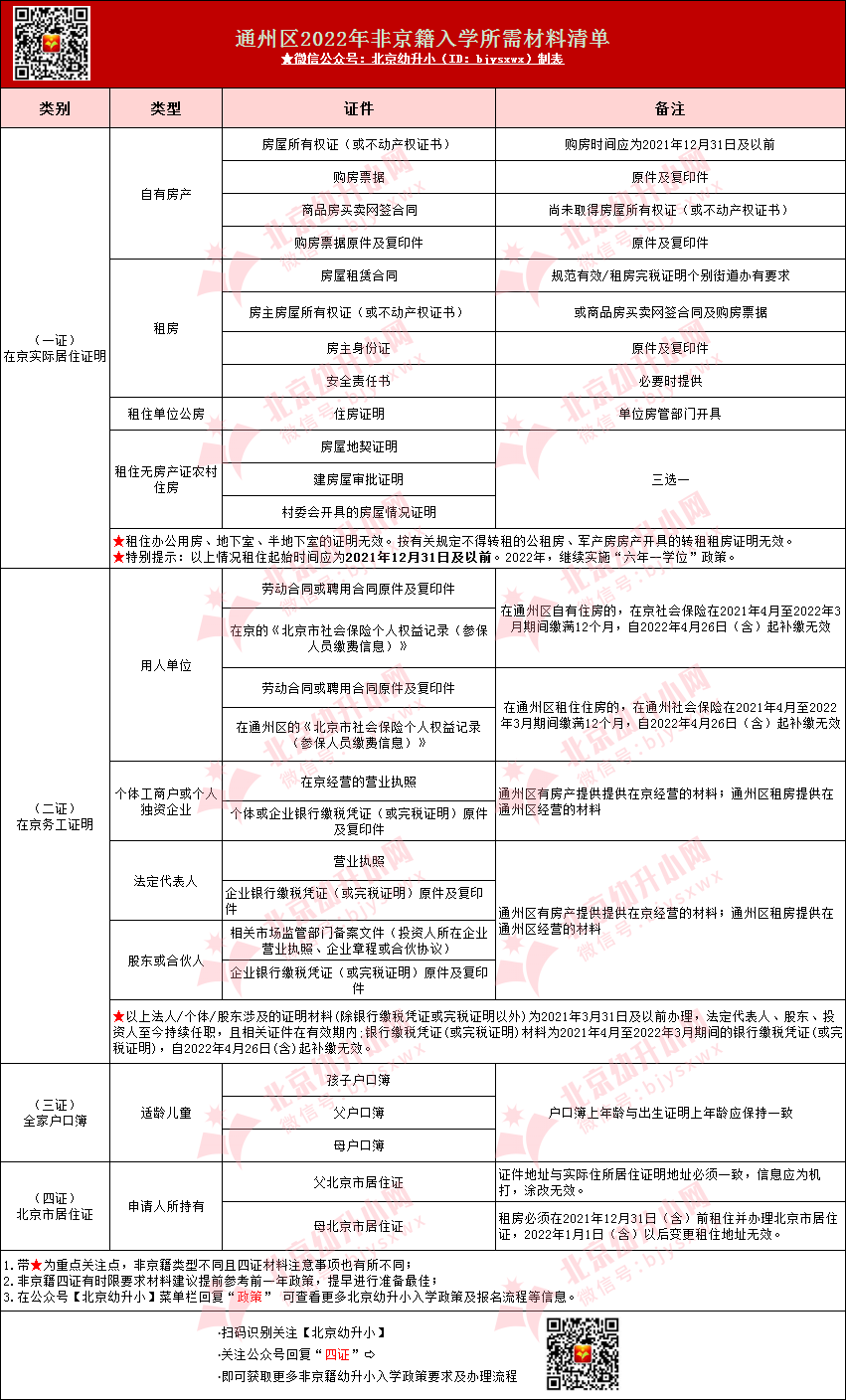 提醒:各区非京籍四证要求不尽相同,部分区有时限要求,建议大家一定要核查好具体材料要求。