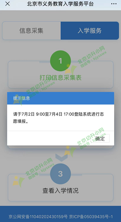 2022年昌平区幼升小信息采集系统志愿填报提醒