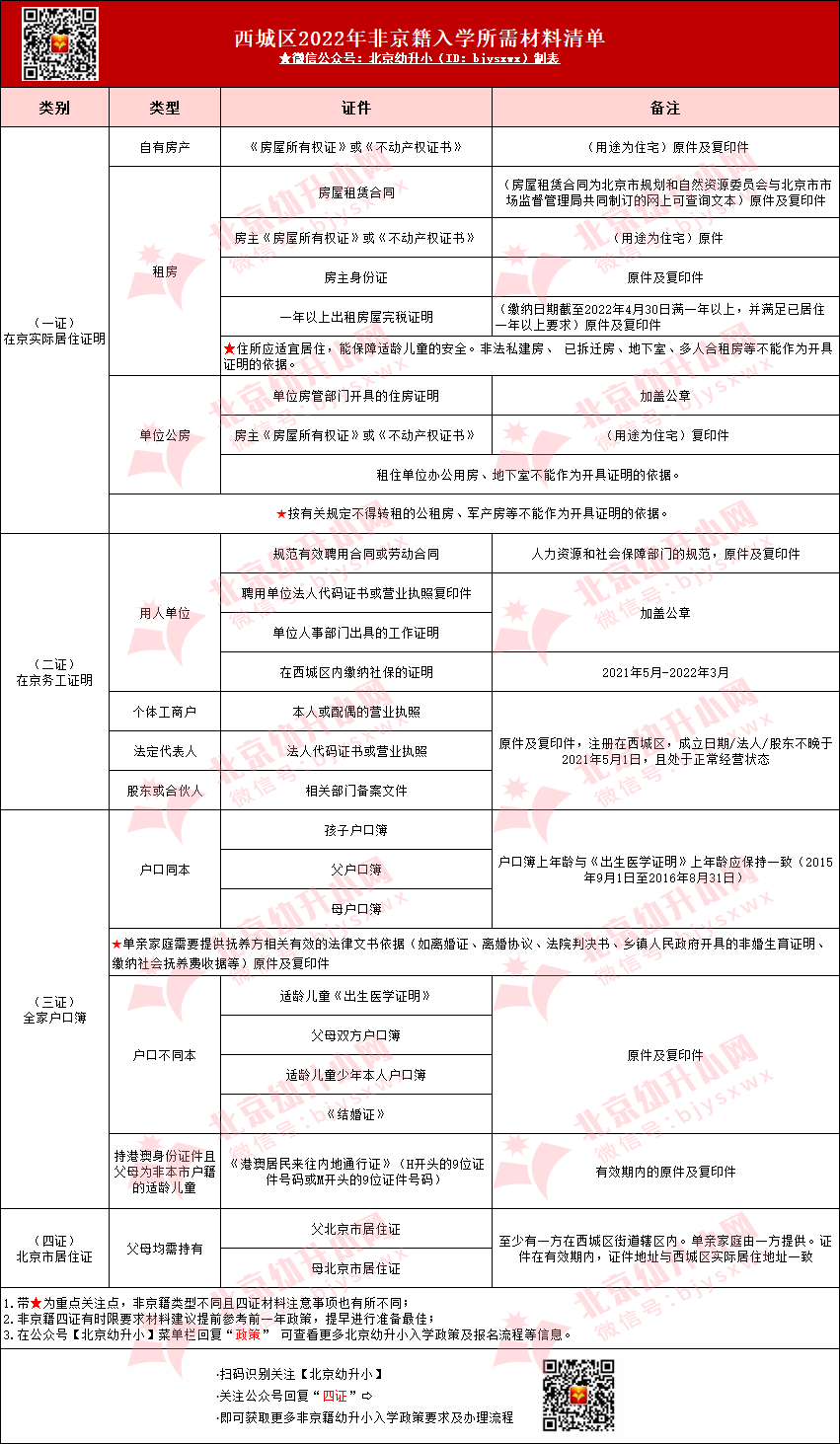 重要提醒!2022年西城区非京籍四证材料清单大曝光,具体如何要求,2023年幼升小四证材料参考什么?快与北京幼升小网一起来看看!