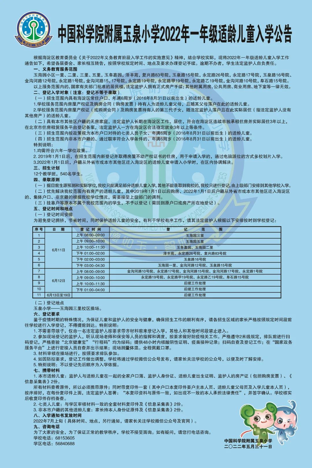 温馨提醒:2022年中国科学院附属玉泉小学招生简章公布,2022年幼升小满足条件家长建议及时查看,如有变化,请以学校实际要求为准。