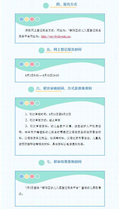7月5日登陆“朝阳区幼儿入园登记服务平台”查询幼儿录取情况。