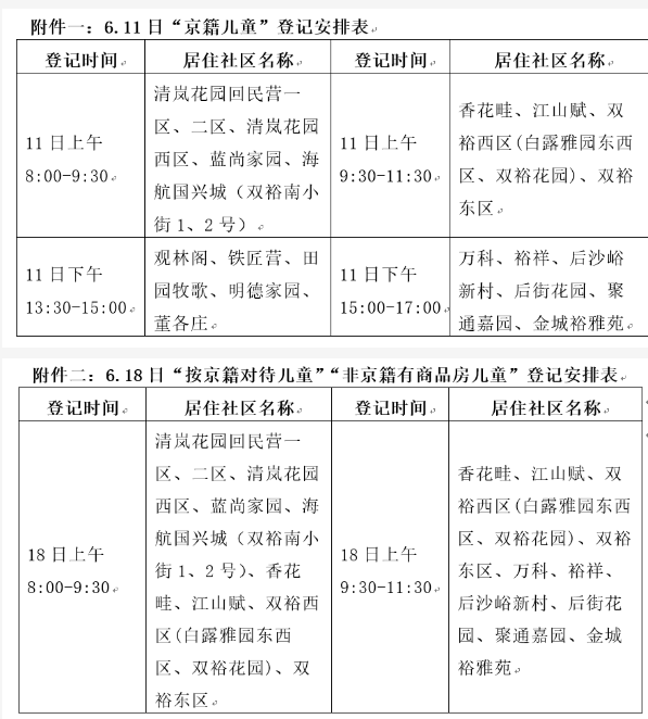 6月11日和6月18日,家长有自购房的本市户籍、按本市户籍对待、非本市户籍有房的儿童初验、确认。(详见附件)