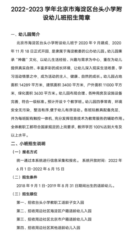 2022年海淀区台头小学附设幼儿班招生简章发布,2022年台头小学附设幼儿班报名方式是什么?海淀区幼儿园信息采集网址是什么?北京幼升小网为您分享相关内容。