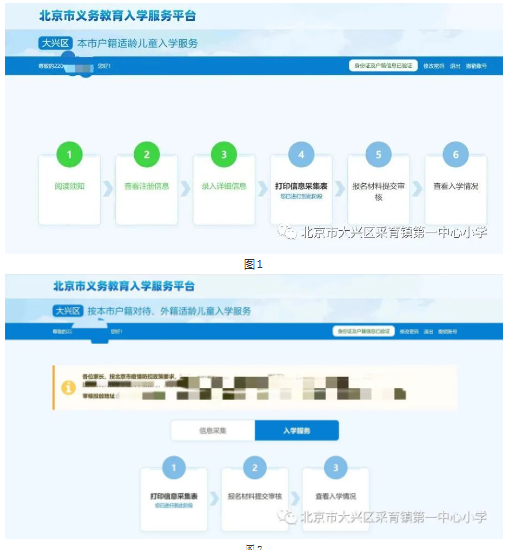 3、登录成功后,进入以下界面,如图1(本市户籍适龄入学服务界面)或图2(按本市户籍对待、外籍适龄儿童入学服务界面):