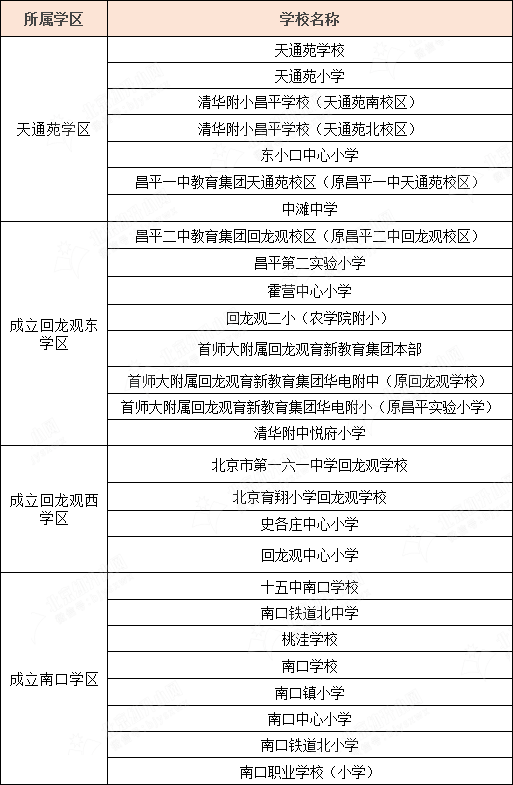 2022年幼升小昌平区学区划片表(各学区中小学分布一览)