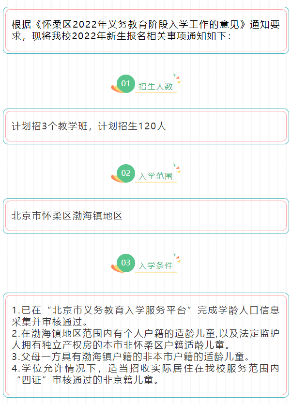 根据《怀柔区2022年义务教育阶段入学工作的意见》通知要求,现将我校2022年新生报名相关事项通知如下: