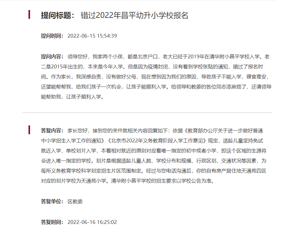 北京幼升小网团队提醒:按照区教委答复来看,错过小学报名家长需与划片小学联系沟通确认具体报名要求。建议2023年幼升小的家长,一定要参考了解,明年小学入学报名启动后,请务必在政策要求的时间内完成幼升小各项报名,避免错过报名环节。