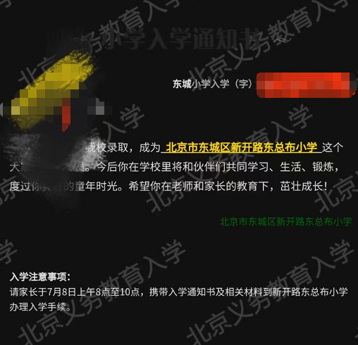 2022年北京小学录取通知书汇总
