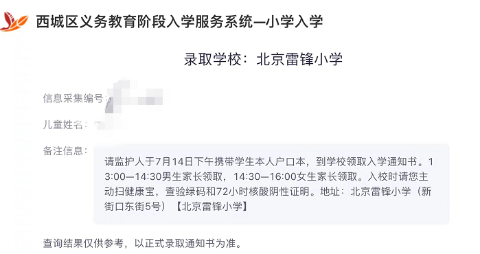 温馨提示:北京各区小学录取通知进度不同,详细点击查看:2022年北京各区录取进度一览;