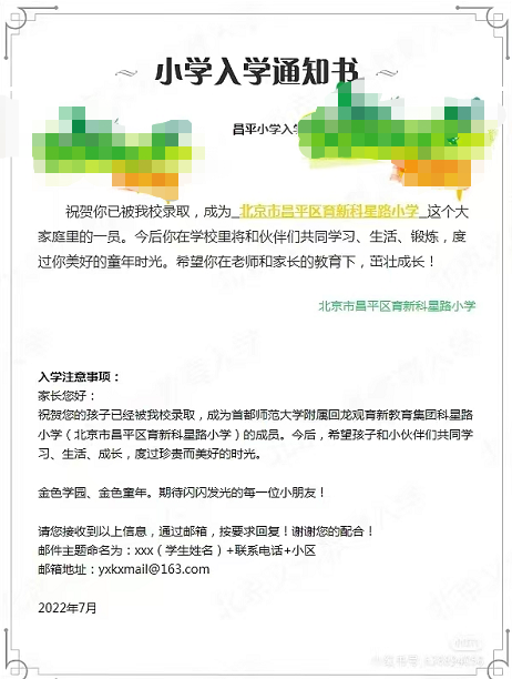 温馨提示:北京各区小学录取通知进度不同,详细点击查看:2022年北京各区录取进度一览;