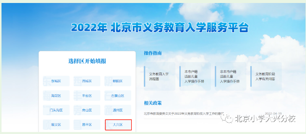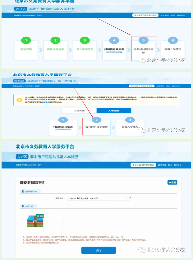 北京小学大兴分校2022一年级新生入学材料网上提交指南