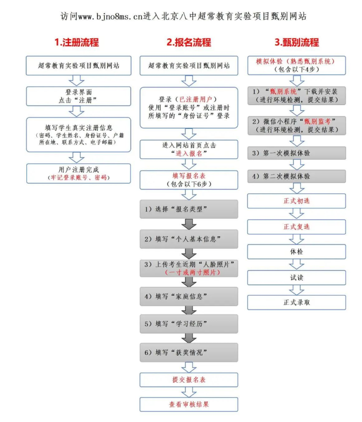 2022年北京八中超常教育实验项目招生报名流程有哪些流程?在哪参加2022年北京八少八素招生报名?北京幼升小网为您分享相关内容。