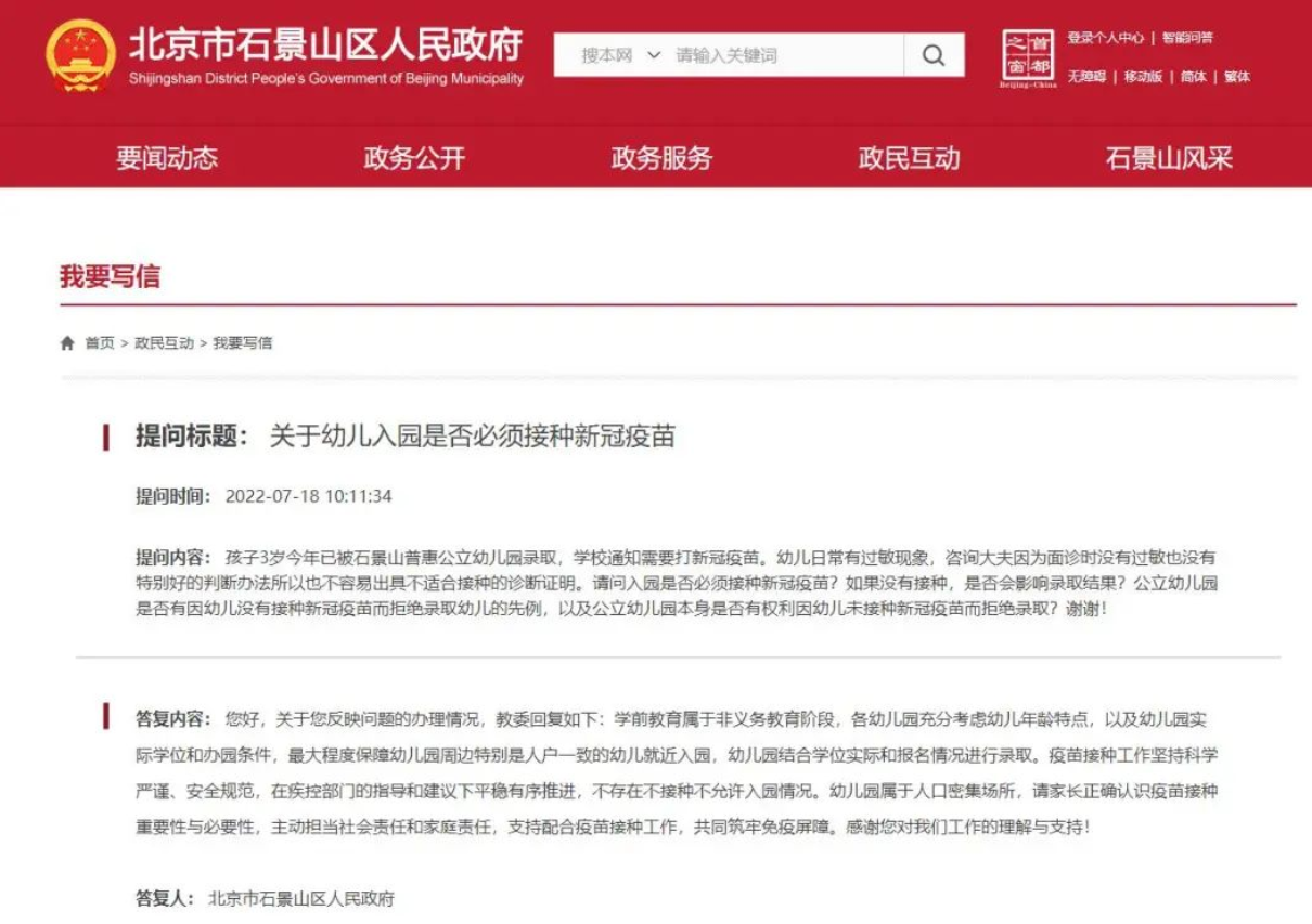 2022年石景山区幼儿园入园是否必须接种新冠疫苗?幼儿园入园需要接种新冠疫苗吗?石景山区幼儿园对新冠疫苗的接种有规定吗?北京幼升小网为您分享相关内容。